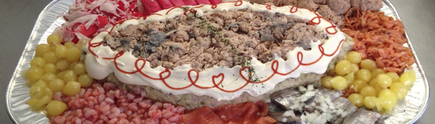 Onze eigen gemaakte salades, al 60 jaar een regelrechte hit tijdens de feestdagen, maken het u dit jaar gemakkelijker. U zet ze zo op tafel, ze worden namelijk geleverd op een prachtige schaal, een lepel er in en klaar! Lekker voor op (stok)brood, bij de (kerst)borrel, als voorgerecht tijdens het diner, of gewoon als lekker tussendoortje.